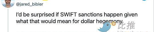 與此同時,據報道,俄羅斯一直在開發自己的SWIFT替代方案,前總理德米特里·梅德韋杰夫(DmitryMedvedev)聲稱該替代方案具有功能性,并且可以在必要時取代SWIFT。這表明俄羅斯有可能成為第二個全球銀行網絡的紐帶,這個網絡完全不受歐洲和美國的影響,而且很可能不以美元為基礎。冰島前銀行監管人員JaredBibler在推特上表示,美國希望長期保持美元主導地位,這使得俄羅斯不太可能被SWIFT除名。