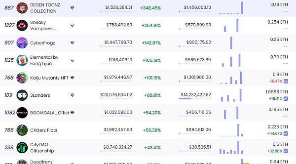 24小時內銷售漲幅前十的NFT數據來源:NFTGO