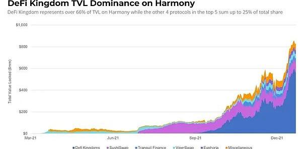 上圖:DeFiKingdom協議在Harmony鏈上的TVL(總鎖倉價值)增長情況。