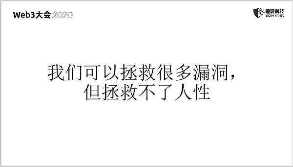 值得一提的是,余弦認為 “代碼即法律” 是一句不切實際且不負責任的話。他認為區塊鏈安全遠不止發生在區塊鏈上,礦池、交易所、錢包等都存在被攻擊的風險。他最后強調,信息邊界在哪,戰爭就在哪。