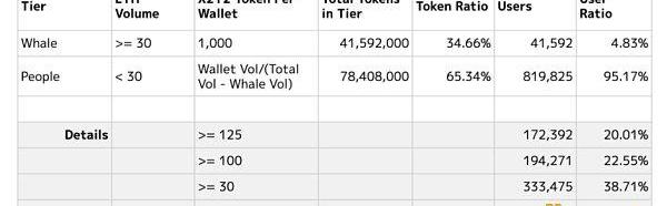 空投方面,根據Litepaper,X2Y2將向超86萬名OpenSea用戶發放空投,為了降低巨鯨效應,X2Y2會為在OpenSea上交易量大于等于30ETH的巨鯨用戶均發放1000枚X2Y2,為交易量小于30ETH的用戶按照其交易量占比分配空投。
