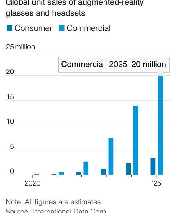 根據IDC估計,2021年雖然售出了不到100萬臺AR眼鏡和頭戴設備,但到2025年,預計AR設備銷量將增長到2340萬臺,也就是5年達到2000%的增長幅度,其中2B企業客戶將貢獻總銷量的85%左右。