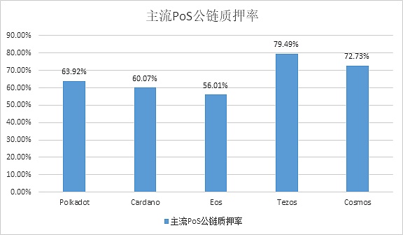 PoS共識協議中,數字資產被抵押在其中從而決定驗證者,而質押資產會作為激勵機制去規范驗證者的行為。如驗證者驗證了一筆有效交易,則會獲得交易費用作為獎勵,因此只有在系統里誠實行事才能獲得激勵。驗證者完成實際驗證工作之后,就可以獲得網絡中的原生代幣獎勵,但是如果他們做出了一些惡意行為,那么權益就會被削減。然而,當前的PoS似乎違背了他的初衷,PoS的初衷是為了社區共同治理,質押代幣越多,其安全性也就越高,而現如今的持幣者更傾向于‘用票換錢’炒幣成了他們的首要目標,這也造就了當今PoS的痛點——質押凍結了持幣者的流動性。PoS質押機制,用戶基于其質押的加密貨幣借此獲得一定權重的對網絡升級治理的投票權,如下圖所示,當前主流PoS公鏈中質押率都超過了50%。在行情波動巨大的加密世界中,質押的時間成本太高。在解除質押前,用戶將承擔諸多風險如:失去流動性,價格波動巨大,而自身無法及時做出相應操作,價格上漲無法止盈價格下跌無法止損;項目方為了確保其主網安全,不同的項目對于贖回期有不同的要求,只有等待相應的贖回期才可收到代幣。目前TRX的贖回期是3天,ATOM和XTZ的贖回期是21天。而這其中投資者的潛在風險,其實是Staking質押權流動性不足所致。