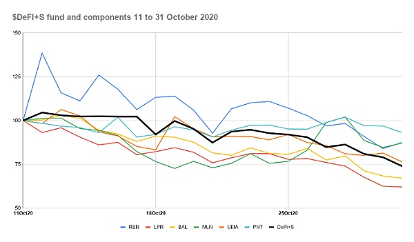 圖5:2020年10月11日以來$DeFi+S和成分Token的表現