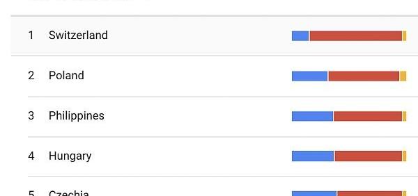 “NFT”,“ETH”和“Metaverse”在Google上搜索熱度的區域分布–2021年全球范圍統計