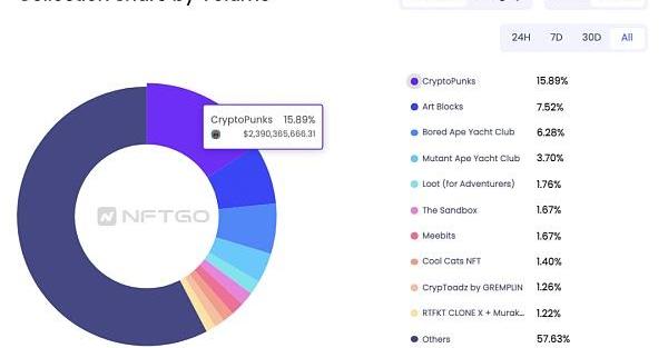 不同系列的NFT交易量占比數據來源:nftgo.io
