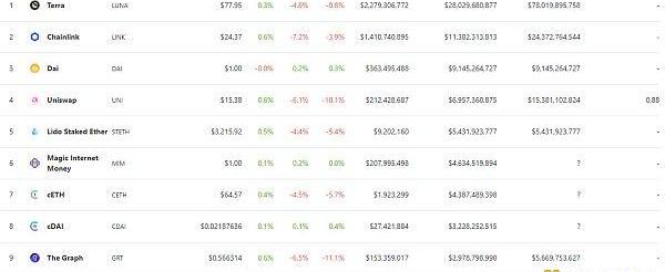 DeFi項目鎖定資產前十排名及鎖倉量數據來源:defillama