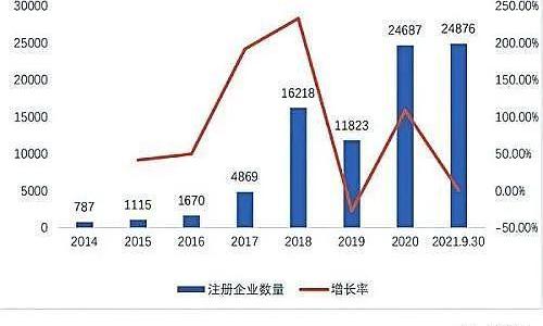2014年-2021年區塊鏈相關注冊企業數量及增長率