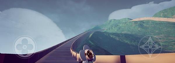 進入游戲第一關,本關屬于教學關卡,左邊按鈕控制行動,右邊按鈕控制方向及玩家視角、跳躍滑翔等技能。一眼看去這個小游戲操作非常簡單,游玩門檻低,屬于男女老少都可以迅速上手的休閑娛樂小游戲。