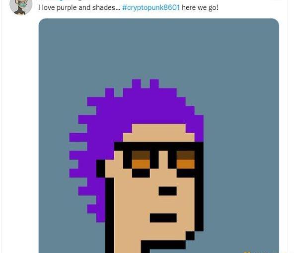 2021年11月8日,林俊杰花費125?ETH買入8601號CryptoPunks。