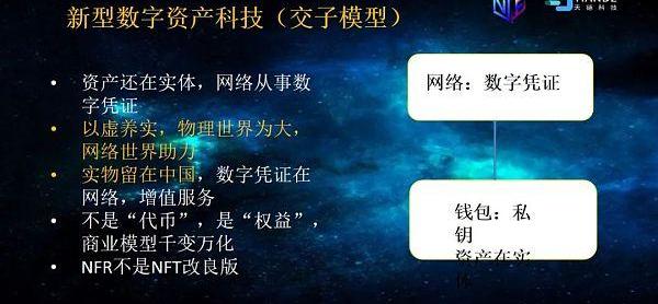 鏈網絡做什么?鏈網絡是從事數字憑證,證明我有這些銀子。當我們的模型這么做的話,整個經濟模型跟國外的NFT正好相反。我們這么做意味著什么?以虛養實,物理世界為大,依靠網絡世界助力實體經濟發展。數字文化的話代表什么?代表實物還留在中國,數字憑證是在網絡,它不是一個代幣,是一個權益。商業模型千變萬化。