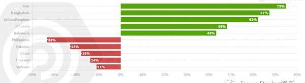 在過去幾個月,菲律賓、泰國或越南等亞洲國家與中國一樣是主要的流量驅動因素。但9月份的數據卻顯示出不同的情況,與8月份相比,菲律賓、臺灣和越南的游戲相關流量分別下降了58%、43%和40%。