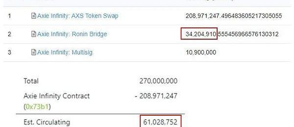 RoninBridgeAXS金額取自代幣持有者圖表,來自CoinGecko的流通供應。