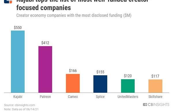 2021年上半年,以創作者為中心的公司獲得了13億美元融資,幾乎是2020年一整年的三倍。