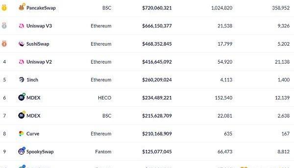 過去24小時去中心化交易所的交易量數據來源:Debank