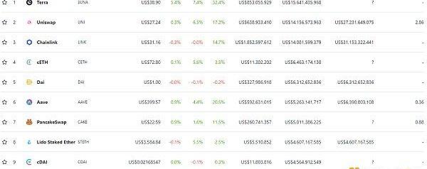 DeFi項目鎖定資產前十排名及鎖倉量,數據來源:Debank