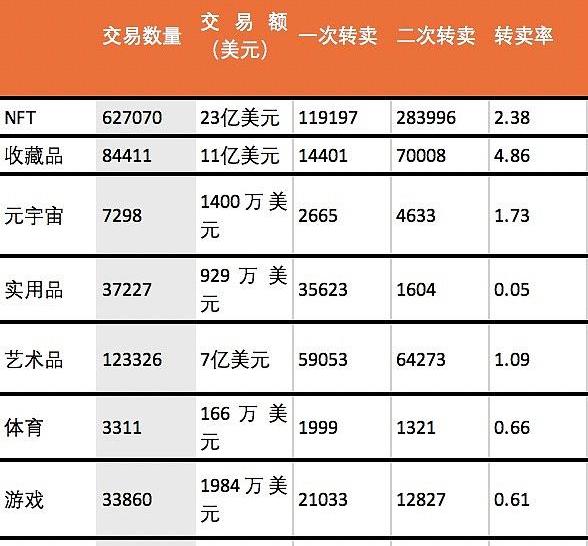 NFT各類型的二次轉賣次數