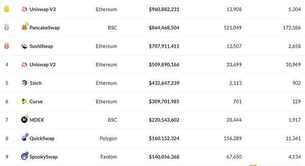 過去24小時去中心化交易所的交易量數據來源:Debank