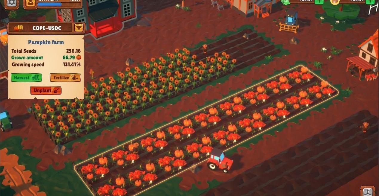游戲內容:游戲中玩家可以模擬種地進行經營生產,2.0版本中將會添加添加戰斗模式增強游戲性,游戲內分為基礎設施和NFT設施,基礎設施有銀行,倉庫,市場,NFT設施如糧倉,購買后將幫助土地獲得額外百分之五的產量;游戲中設置了天氣系統,天氣的變換將會根據你所處的位置和市場行情共同決定,極大程度模擬了農作物生長的環境;另外還設置了一些小游戲,可以通過小游戲獲取額外的收益。