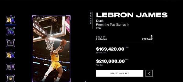2019年7月,NBA聯盟、NBA球員協會和DapperLabs聯合成立NBATopShot,允許球迷在該平臺上購買、出售特定的、官方認證的精彩片段NFT。用戶可以在該平臺上購買球星卡,精彩片段。球星卡價格根據球星卡的球星級別、稀有程度來決定。數量越稀少或越關鍵精彩片段,精彩片段價格亦越高。LebronJames一個灌籃精彩片段在該平臺上以20萬美元的價格成交。如今該精彩片段價格已逐漸升至21萬美元。