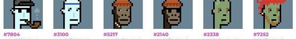 這些猿猴形象是一個NFT主題,且在BAYC之外也是如此。比如,有史以來最昂貴的四個CryptoPunk頭像中的兩個也是猿猴形象,如下圖所示: