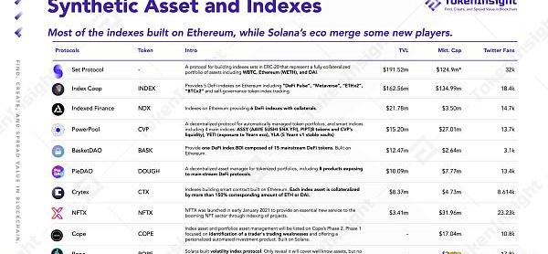 其實大多數這類指數協議都是構建在以太坊上的,此處一共列出10個指數項目: