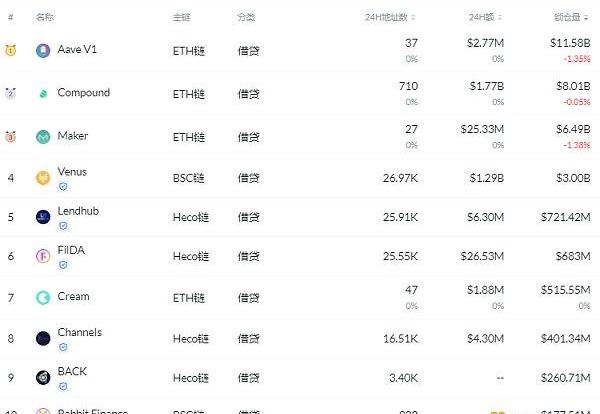 鎖倉量排名前十的借貸平臺排名來源:DeFibox