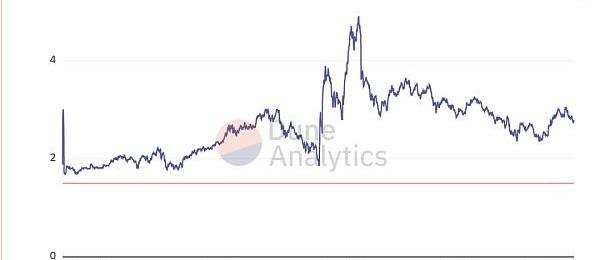由于Maker的全部協議收入也都由MKR獲取,所以這Maker的P/E和P/S也是相同的。所以我們直接來比較MKR和LQTY的P/E——