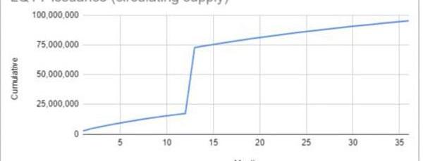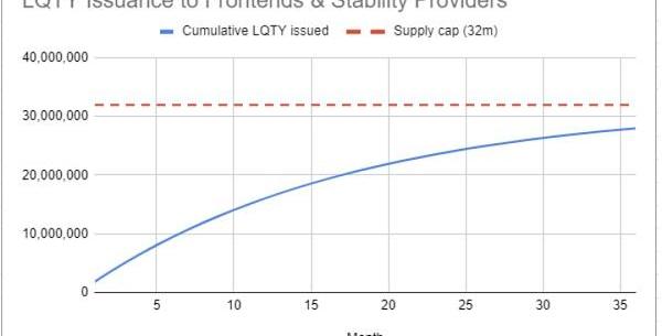 可以看出,在上線后12個月,也就是2022年4月會迎來LQTY解禁的高峰,代幣總流通量會變為7500萬枚。