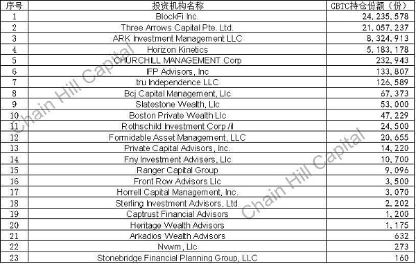 數據顯示,購買GBTC的80%是機構投資者,且截至2020年11月,共有23家公司(合計29個機構級賬戶)持有灰度比特幣信托份額。加密資產借貸公司BlockFi是灰度比特幣信托的最大持倉者,持有約2423.55萬份信托份額;持倉第二的是三箭資本,是目前最為活躍的加密貨幣對沖基金之一。