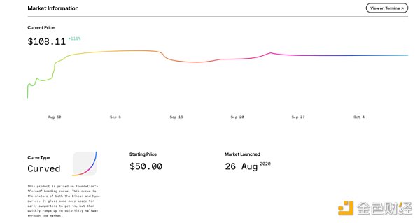 這是另一個市場Foundation上PLS&TY的限量版EP的截圖,和Zora方式類似的可贖回代幣化的商品和價格曲線。