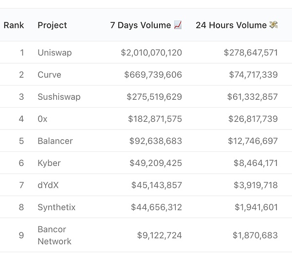 XRP/HKD-0.88%近期Uniswap即將停止挖礦,再次啟動需要約一周的時間,作為DeFi上第一的鎖倉項目,鎖倉市值超29億美金,將對整個DeFi產生非常大的影響,在調研后發現Uniswap的混沌期將為競品Sushi帶來一段春天。在以前的文章中我曾經說過,對DEX并不看好,不建議大家介入,但隨著DEX大額的降幅,泡沫過后反而會出現真金。