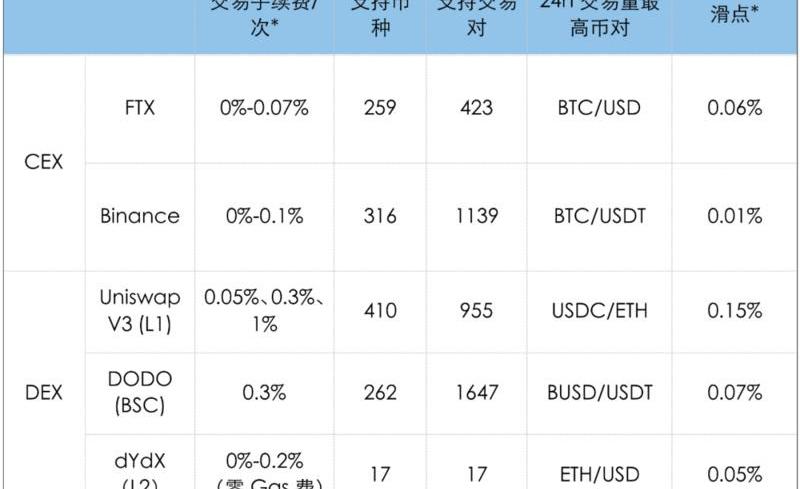 為了進一步衡量當下DEX和CEX上的數據和交易體驗,我們將從以下3個指標來簡單進行對比。