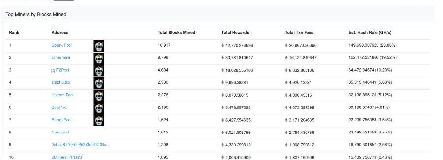 圖4.Etherscan:2021年5月16日至22日的頂級礦工。