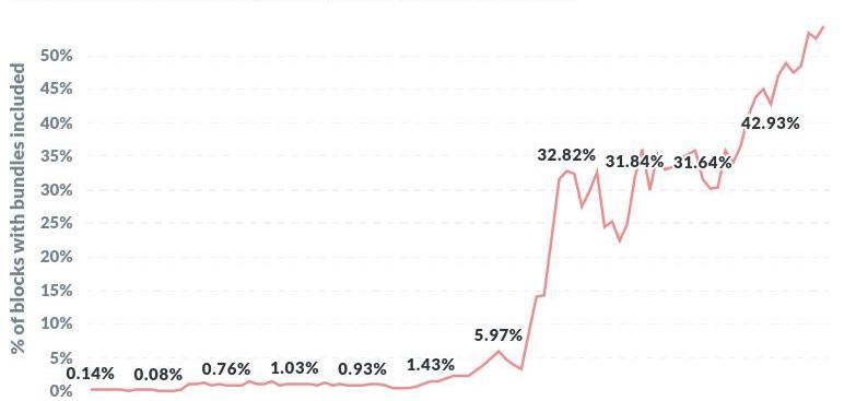 圖5.Flashbots儀表板:截至2021年6月1日,包含Flashbots包的塊的百分比。