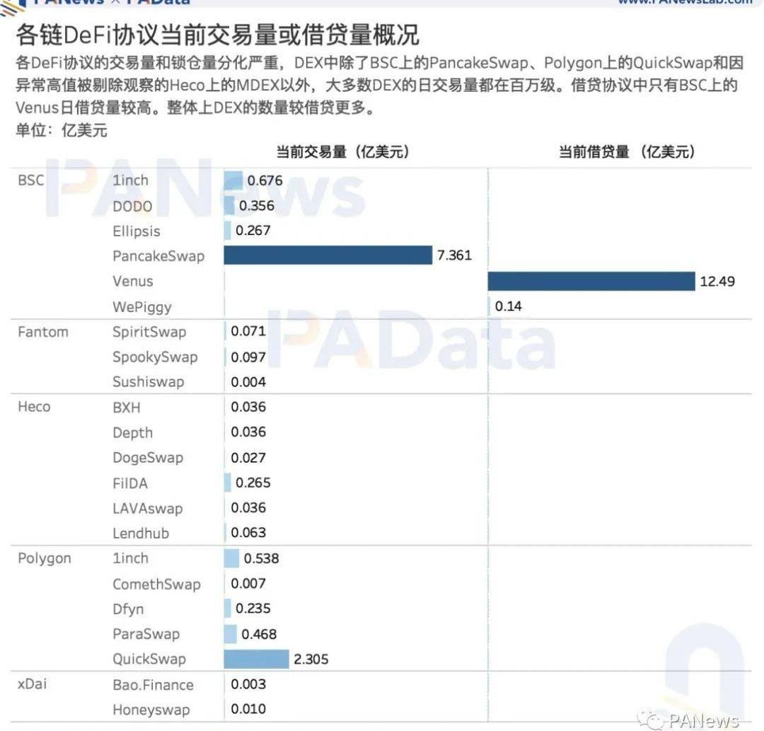 PAData在分析了Polygon、xDai、Zkrollup、BSC、Solana、Fantom、Heco和Avalanche這8條公鏈共40個DeFi協議的交易數據后發現: