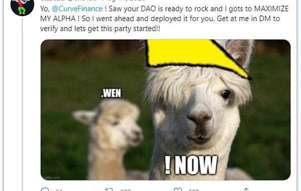上圖:推特用戶0xc4ad表示自己已經趕在Curve團隊之前部署了CRV代幣合約。