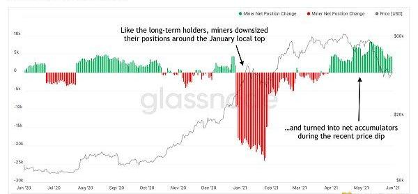 在礦工的凈頭寸變化中也可以看到類似的趨勢,這是另一類明確具有長期市場經驗和風險敞口的市場參與者。