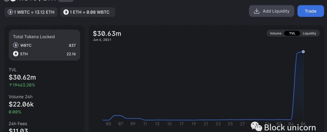 第一步已經完成,其他貨幣對也在跟進。在USDC/ETHTVL躍升后不久,USDT/ETH的TVL以0.05%的速度翻了一番,而WBTC/ETH~300倍!DAI/ETH是交易量第三大的ETH對,但0.05%TVL尚未起飛......