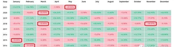 大家好,我是佩佩,上述雖說是個段子,但好像也挺應景,五月最后一天也是收月線的日子,本月應該說是非常慘,比特幣月度跌幅達到37%,恐創十年來最糟: