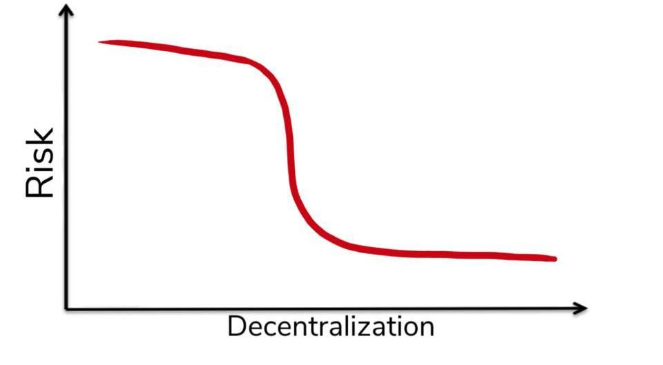這也是Qureshi觀點的正確性,并且去中心化并沒有你想象中那么重要。很顯然,去中心化對審查抵抗至關重要。但目前業界也沒有一個清晰的閾值,而且具體的數值本身并不重要——真正重要的是:1)風險-去中心化程度曲線實際上是反向的S曲線,以及2)我們知道區塊鏈隨著時間的推移會變得更加去中心化,因此審查抵抗能力會隨之提升。只要區塊鏈去中心化的速度足夠快——并且你相信它可以去中心化程度增加的速度——那么用戶就能夠維持他們所需的審查抵抗性。