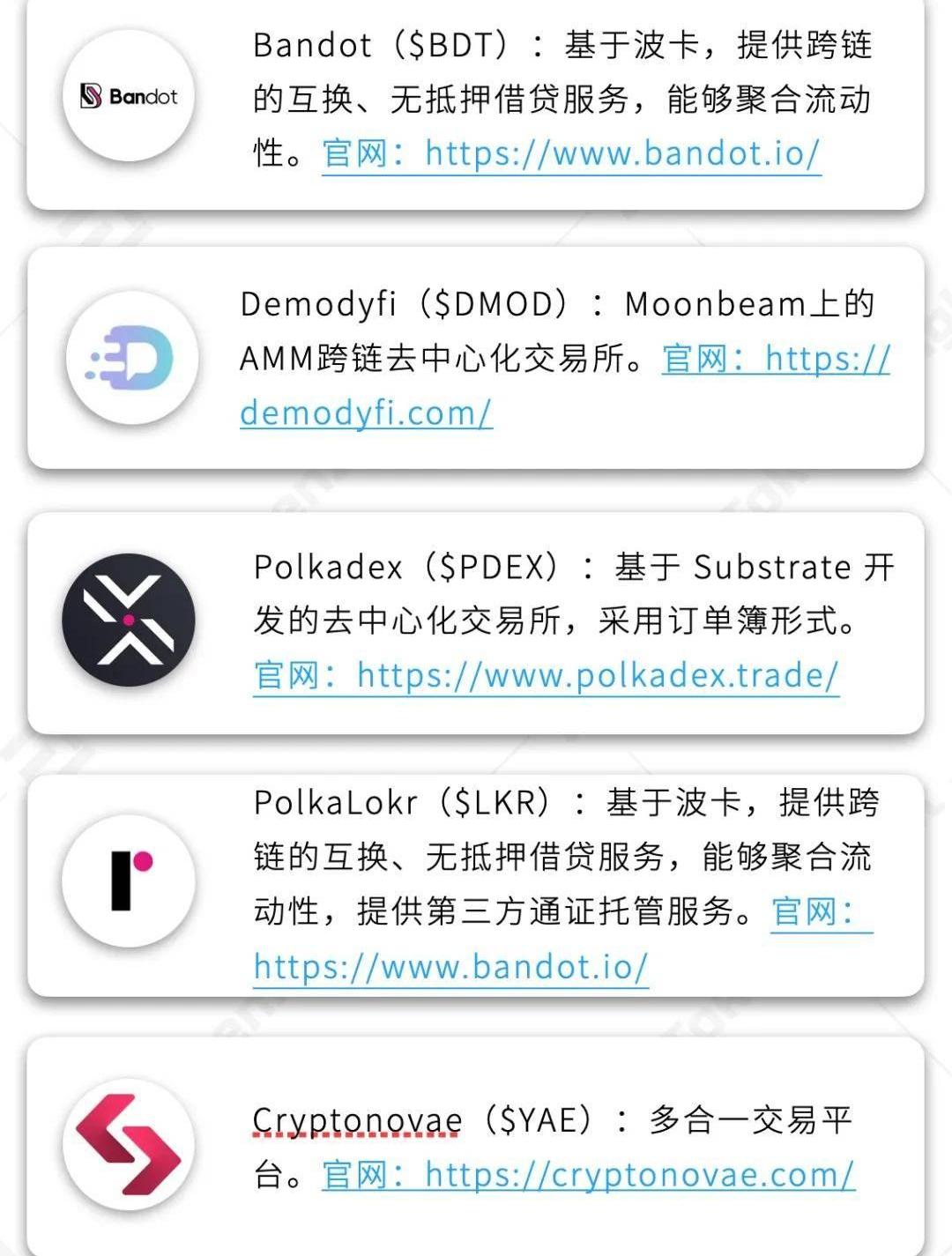 在波卡上部署項目的形式包括租賃卡槽成為平行鏈,注冊付費成為平行線程或成為平行鏈和平行線程上的協議。因此,波卡生態主要圍繞著平行鏈展開,每一個單個的平行鏈項目上可以搭建不同的應用,如交易、借貸等,形成一個全面的生態。同時,由于波卡支持跨鏈,因此波卡網絡上也不乏致力于橋接波卡和外部區塊鏈的項目。
