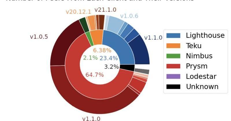 LeonardoBautista-Gomez早在一月的時候公布了一份數據分析,結果現實Prysm節點占網絡的65%,此次事件也顯示Prysm驗證者在今天占了大多數。