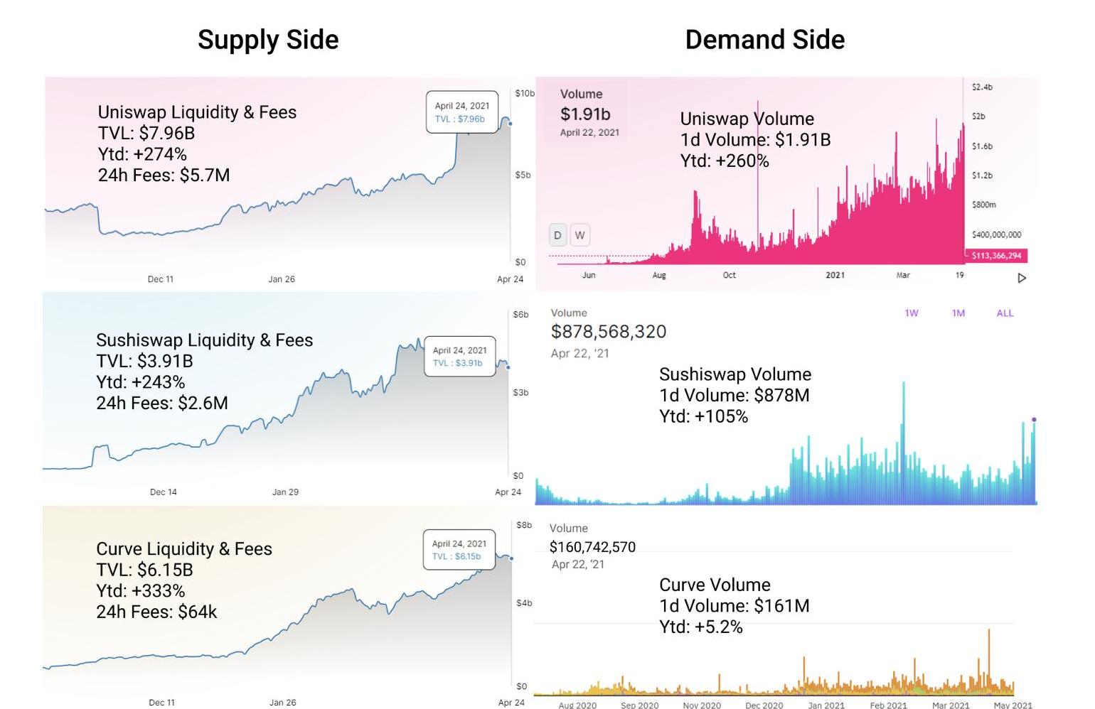 數據源:UniswapAnalytic,SushiswapAnalytic,DeFiLlama