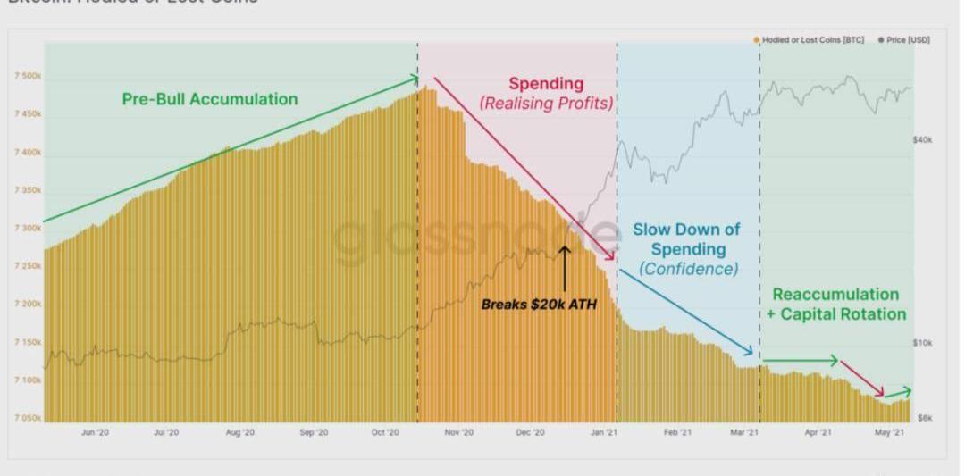2021年3月-5月:二進制CDD再次橫盤交易,??表明舊幣相對處于休眠狀態,市場已恢復為HODLing和重新積累模式。