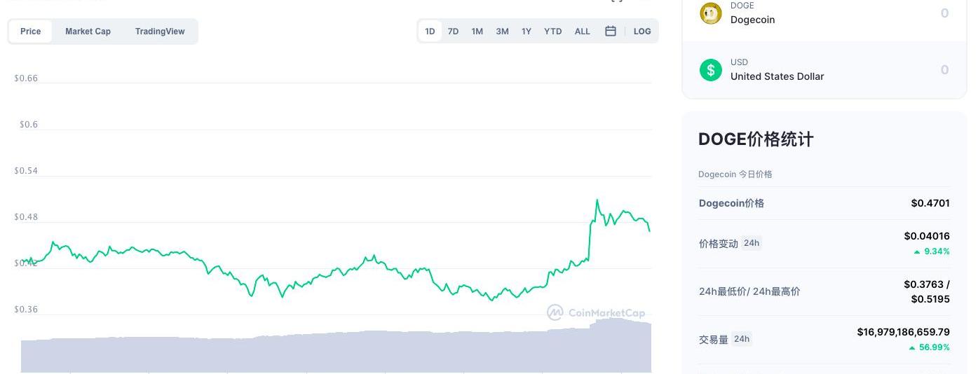這條推文使狗狗幣迅速反彈,24小時一度漲超20%,目前漲幅收窄至10%左右。