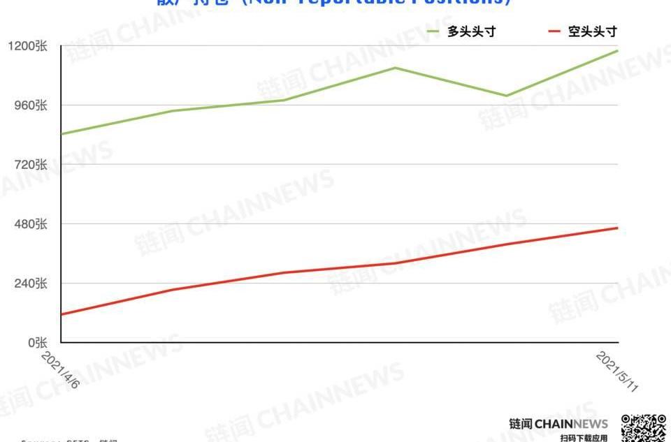 散戶持倉方面,多頭頭寸自2286張下降至2237張,空頭頭寸自868張小幅上漲至876張。散戶比較意外地在市場價格波動幅度有限的情況下進行了清晰的凈空調倉,在大型機構未能準確預判最新統計周期結束后的一輪回調的情況下做出了相當正確的判斷,這可以認為是最新一期周報中最大的意外之喜。