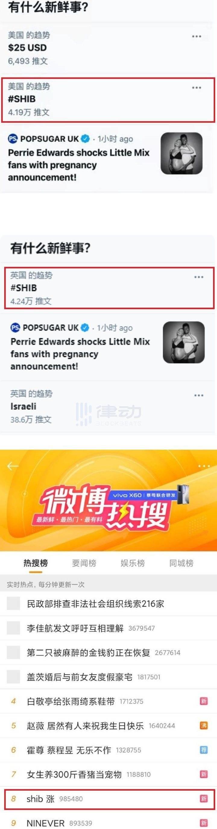 近日,#SHIB頻頻登上多地區推特熱搜。此前「shib漲」也曾進入微博熱搜前十。