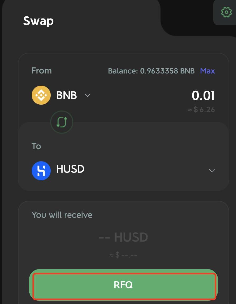 此時,我們可以看到整個兌換的路由信息。BNB先在BSC上換成WBNB,然后換成BUSD,最終跨鏈兌換成為HUSD。接受HUSD的地址,就是我們第一步綁定的錢包地址。