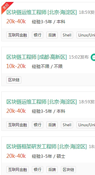 但這類程序員明顯出于稀缺的狀態,說到底起,技術的競爭,就是人才的競爭,因為稀缺,所以高薪:像一線大廠等行業巨頭,紛紛開出高薪招聘區塊鏈工程師,月薪可高達 10 萬。